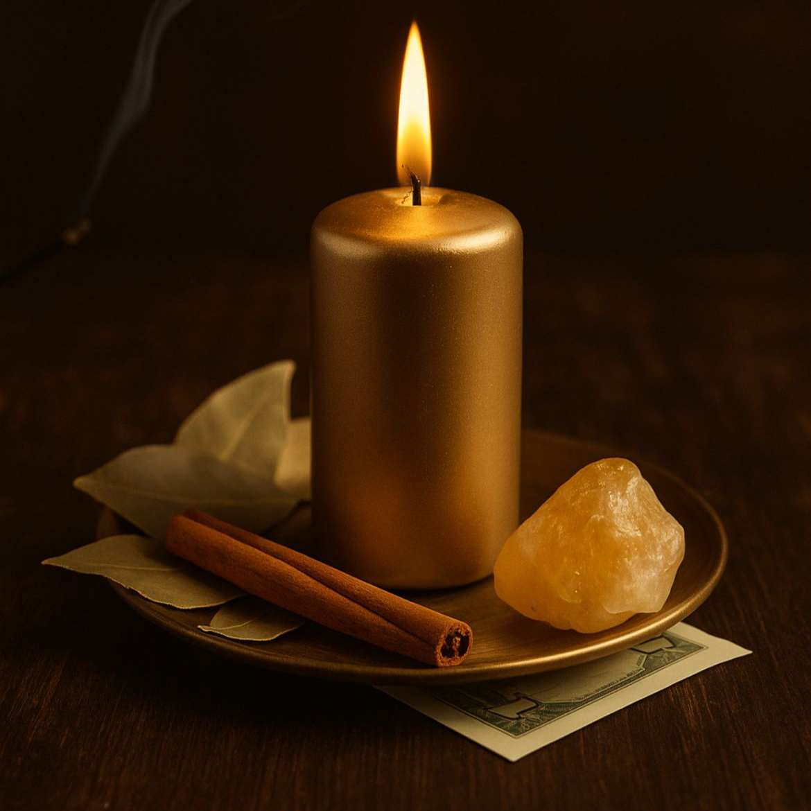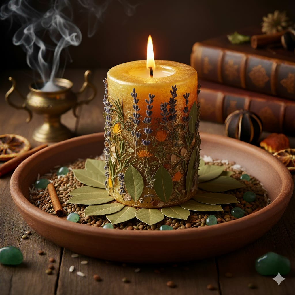 - 1 hoja de laurel (símbolo de éxito y manifestación)