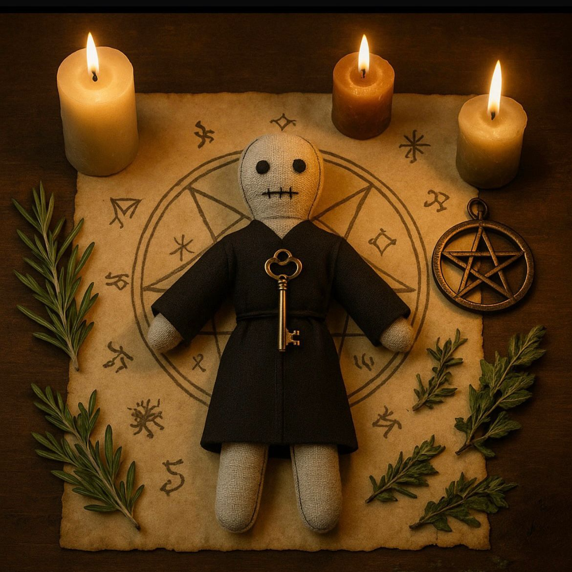 El Alquimista del caos Este ritual combina fuerzas ancestrales de atracción, manipulación psíquica y magia dirigida mediante un muñeco consagrado. Su propósito es provocar el regreso de una persona amada, influir en sus pensamientos y emociones, y sellar un lazo energético que garantice obediencia, deseo y estabilidad. Es una obra mágica intensa, ideal para quienes desean recuperar y dominar el vínculo amoroso desde lo profundo del alma y la mente.